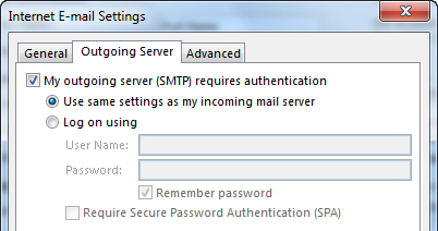 - My outgoing server (SMTP) requires authentication